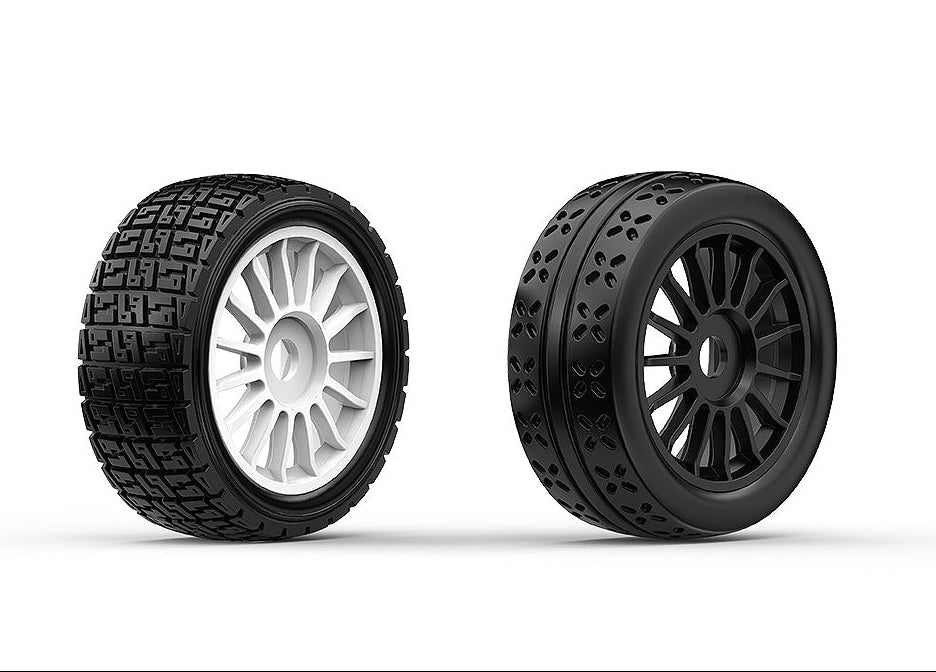 The model arrives with two complete wheel/tyre sets (one for rally surfaces and one for tarmac), so you can switch between driving surfaces in minutes.